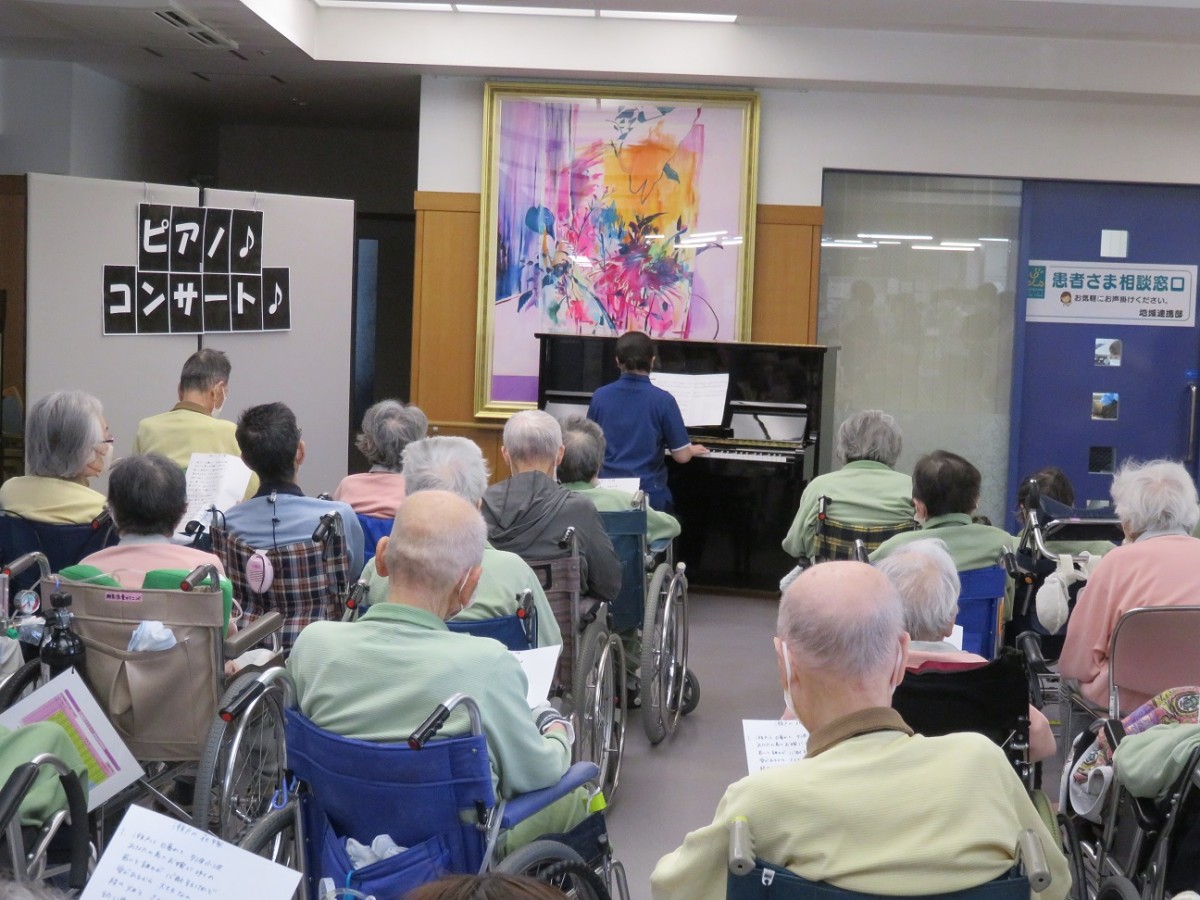 今年の『ピアノ演奏会』演奏者は、今年の演奏者は廣瀨 匠先生、昨年に引き続き柴田 大夢さん(理学療法士)、そして今回から新たに河井 未夢さん(作業療法士)3名。3名共快く引き受けてくださり1F受付ホールにて開催する事が出来ました。